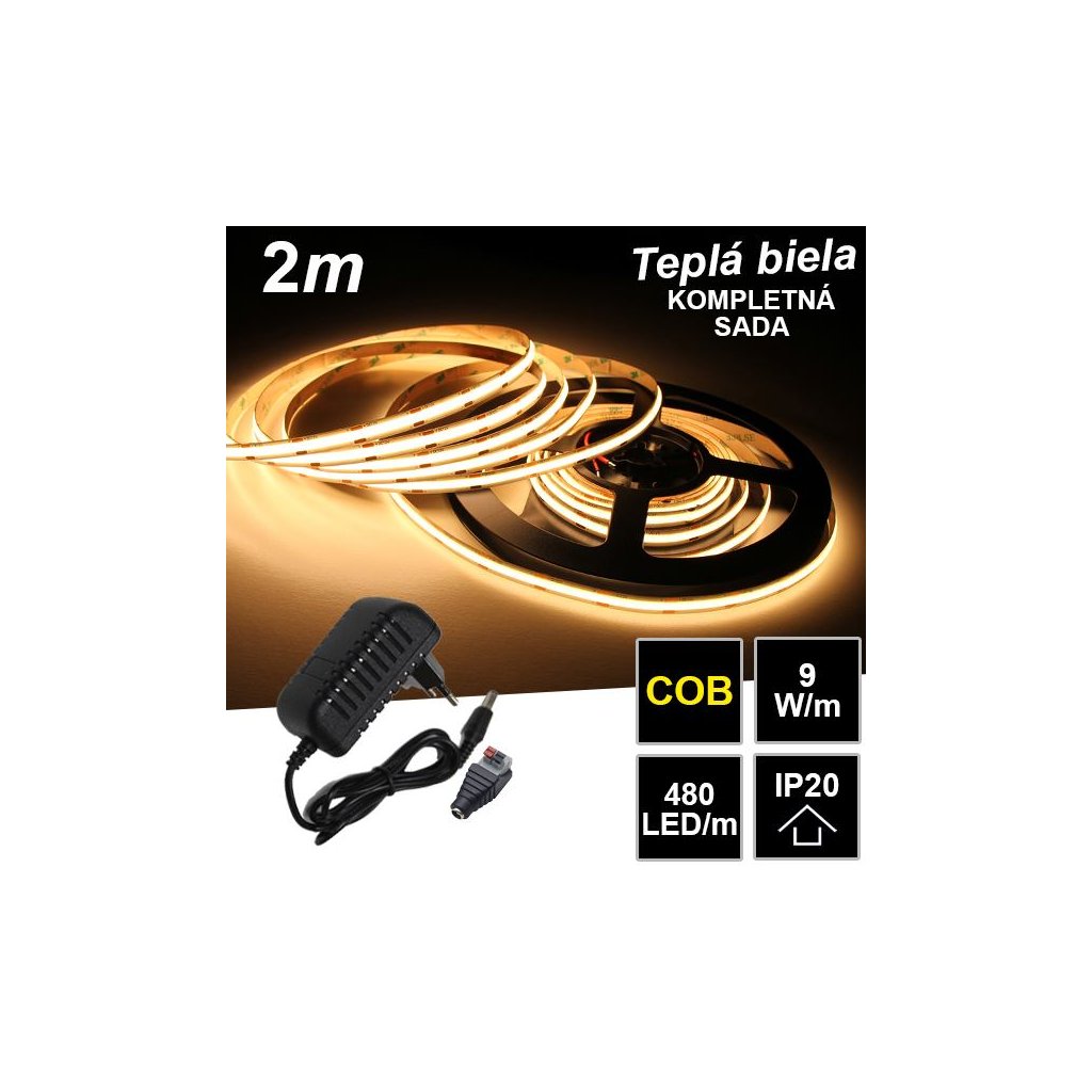2m LED pásik- PROFI COB 480LED/m IP20 – set
